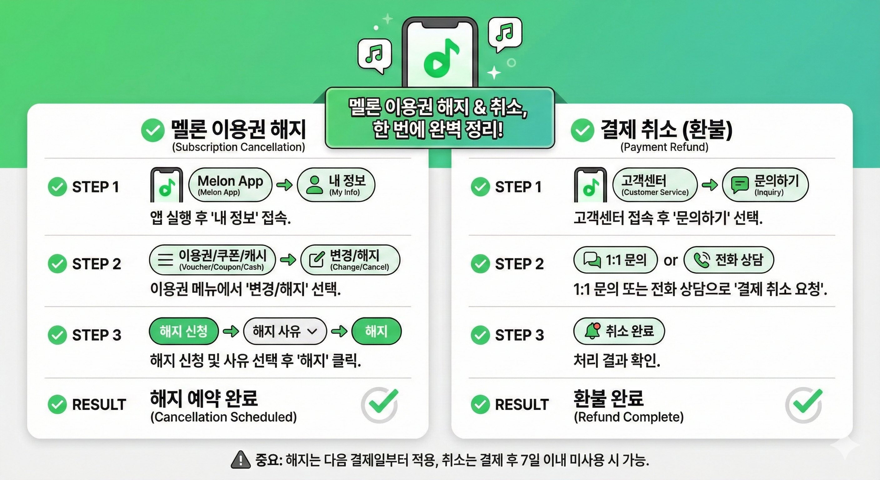 이 글은 일반적인 정보 제공을 위해 작성되었어요. 각 개인의 멜론 계정 상태나 결제 방식에 따라 절차가 다를 수 있으니 참고해주세요.